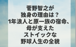 菅野智之が独身の理由は?1年浪人を経てメジャーへ挑むストイックな野球人生の裏側に迫ります。母・詠美さんの献身的な支えや、原一族という宿命が彼の結婚観に与えた影響とは。家族愛と孤独なエースの決意を、徹底解説します!
