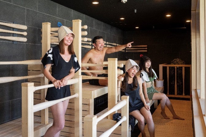 サウナ室や浴槽からも試合を見ることできるエンターテイメント性あふれる斬新なエリアがあります。